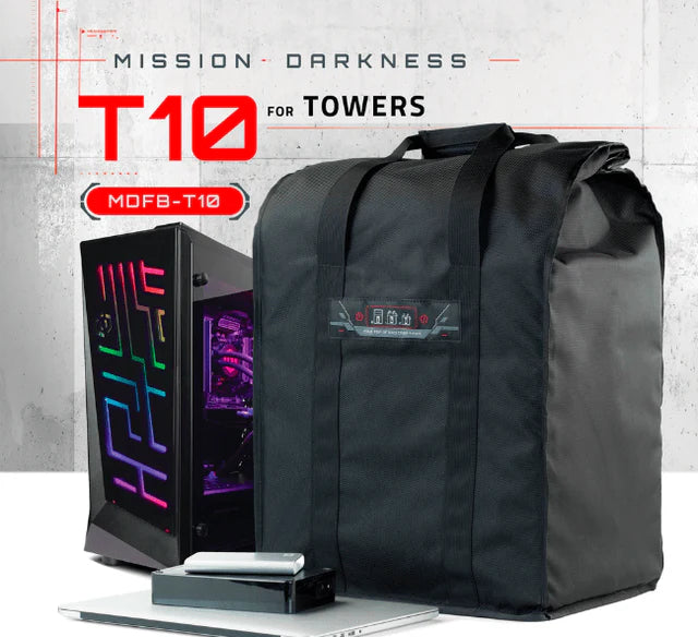 You'll love the fact our EMP shields include a double roll with Velcro closure, unique serial number, and transparent branding pocket. The bag is designed to shield computer towers and similarly-sized devices, such as printers, gaming systems, or DVR boxes. Most faraday bags are simply too small, but the T10 offers ample room to fit even the largest of desktop setups, as well as accessories. It collapses and folds into a small size when not in use, allowing it to be packed in a briefcase or backpack.