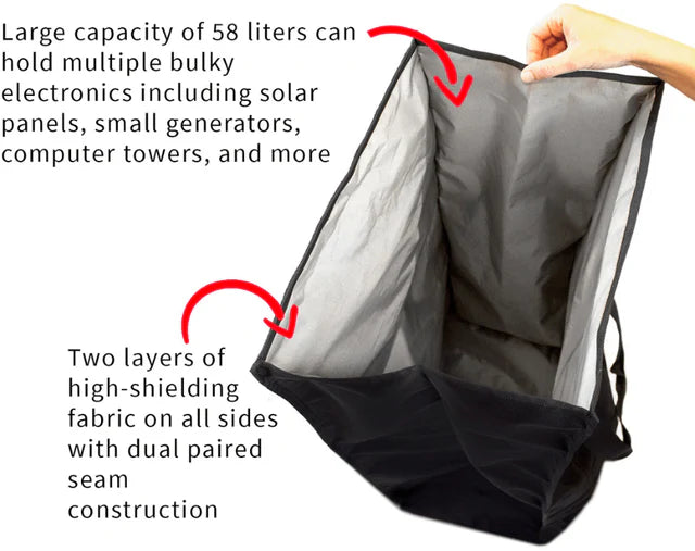 - Three layers of high-shielding TitanRF Faraday Fabric on all interior sides with dual paired seam construction (TitanRF Faraday Fabric is lab certified MIL STD 188-125 compliant)